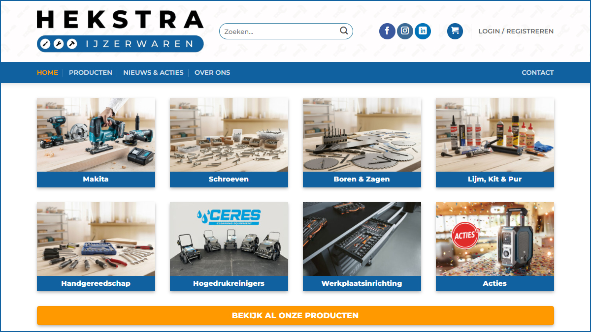 Complete bedrijfswebsite van een groothandel in ijzerwaren met online verkoop en betaling. De website is gemaakt in WordPress. De online verkoopmogelijkheden ( webshop ) gaat via de Woocommerce plugin, een complete e-commerce module, speciaal ontwikkeld voor WordPress.